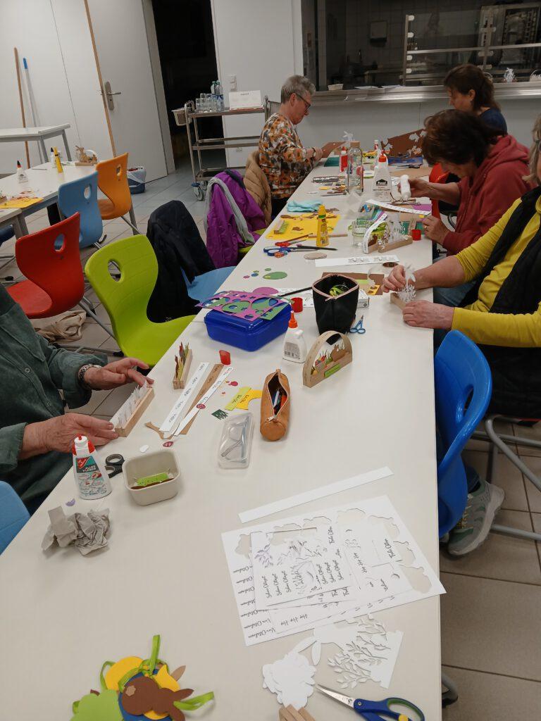 Wie immer herrschte eine gute und fröhliche Atmosphäre, in der neben dem Basteln auch Zeit für nette Gespräche und gemeinsames Lachen blieb. Am Ende konnten alle Teilnehmerinnen stolz ihre selbst gestalteten Osterdekorationen mit nach Hause nehmen.